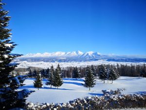 大きな空の下に見渡す限りの田園風景。悠々と連なる大雪山系。