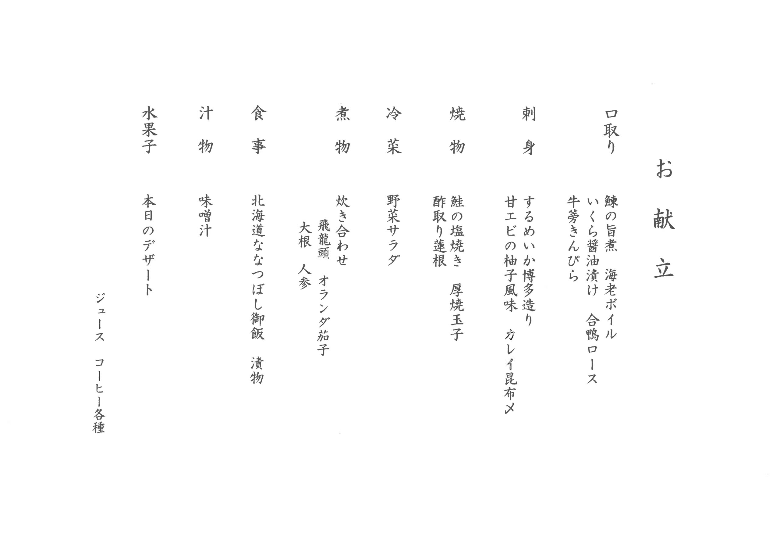 ※時期・仕入状況により内容が変更となる場合ございます。